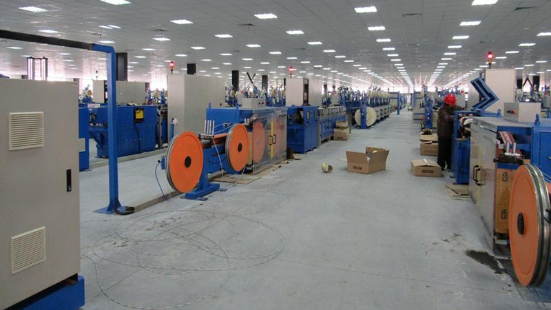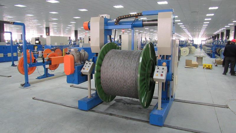 1.Ф1250mm门式主动放线架 2.Ф800mm卧式双轮张力轮 3.Ф800mm光纤束管放线单元 4.加强芯填充 5.SZ绞合单元(差动式) 6.双头同心式扎纱单元