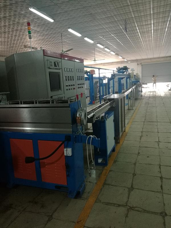 生产线可用于挤制FTTH光缆,护套材料可以是LSZH, HDPE 和 PBT/NYLON